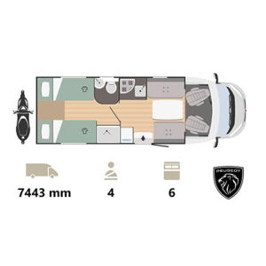 Are o lungime totală de 7,44 m și o capacitate de 4 locuri. Puteți călători atât cu prietenii, cât și cu familia. Rulota XGO Dynamic devine o casă confortabilă pe 4 roți.